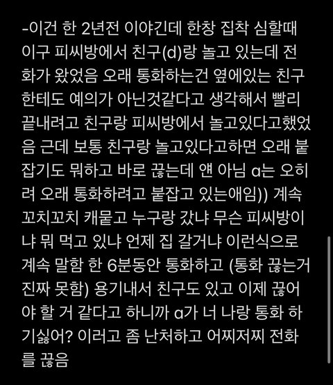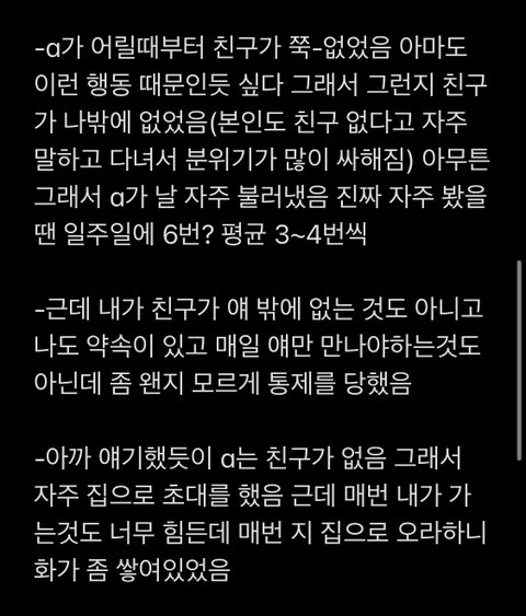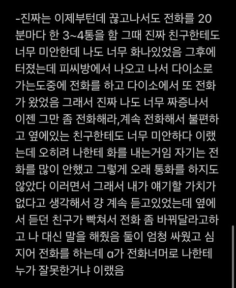 예전처럼 지내게 됨(A랑 나는 힘들어도 계속 참았음) 이때부터 B의 집착이 조금씩
