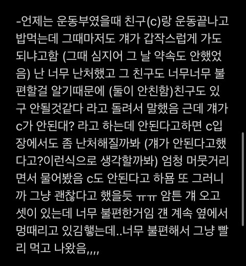 시작 됬음(아마도 자기를 떠날거라는 생각이 있었던듯) A와 내 사이를 갈라놓고 싶었던건지 번갈아가며 은근히 따돌림