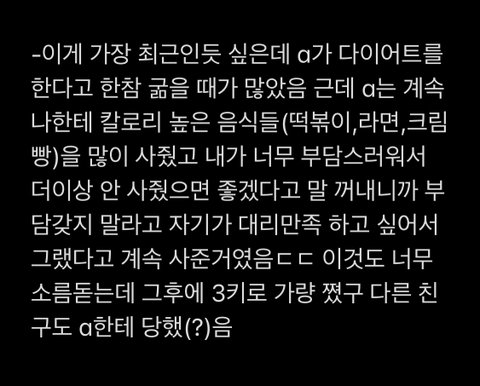 참고로 나한테는 동생이 있는데 B가 동생에게 자꾸 뭔가를 사다줌 큰거는 아니고 자잘한 간식들.물론 줄 때마다 부담스러웠고 싫어서 거절도 해봤지만 계속 받으래서 받게 됨 그렇게 자기가 동생에게 해준 것과 나한테 해준 것을