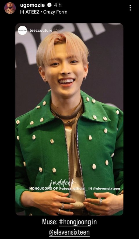 작년부터 친분있던 에이티즈의 홍중에게는 우고모지가 런칭한 브랜드 일레븐식스틴 협찬하고 뮤즈라고 칭한다거나