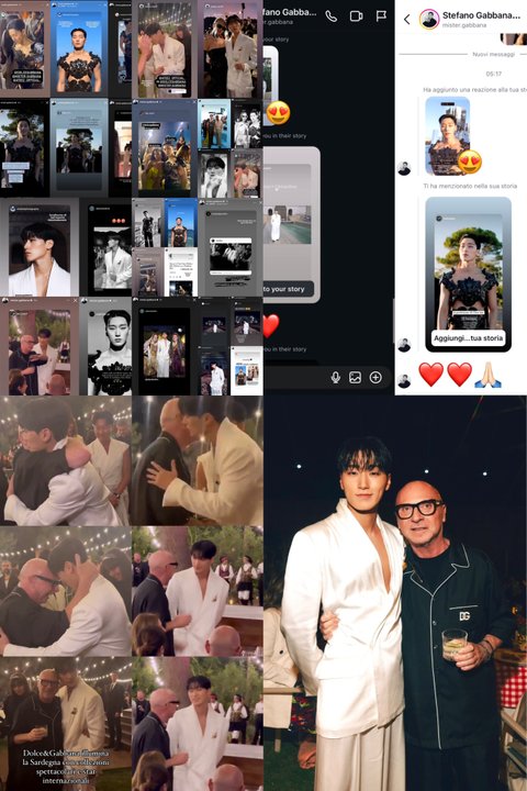 돌체앤가바나의 도메니코돌체, 스테파노가바나 또한 쇼 현장에서 최산 소개시켜주고 끌어당겨서 안고 뺨과 목, 어깨를 두드리고 뺨을 맞대는 등 이탈리아식 애정표현을 보였고 각종 인스타 개시물들을 리그램하고 댓글을 닮