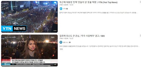 박근혜 탄핵 촛불집회 당시 유튜브 조회수 라이브시청자 엄청났음