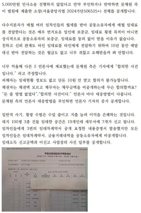 문채원 측과 임차인들 모두 소수지분자에게 임대계약서, 지출을 비공개하면서