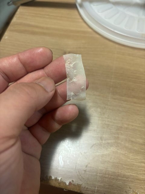 그래서 끊고 사장님께 문자로 사진을보내드리니 두부피인거같다 하셔서 저희도 확인해봤는데 이건 두부피가 아니다 고무처럼 늘어난다 저희는 억울해서 가게로 가서보여드리겠다했지만 매장문닫았으니 내일 매장에 오면 새로 한그릇해주겠다 이렇게만 말씀하시더라구요