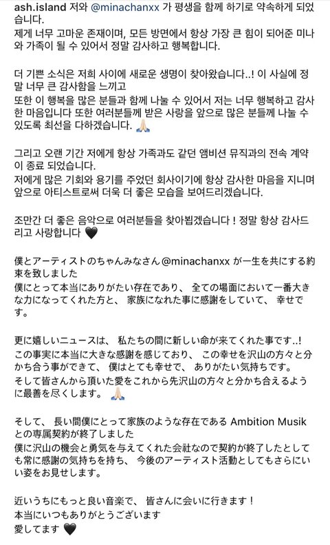 애쉬아일랜드 챤미나 결혼한대