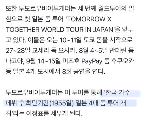 6. 4대 돔투어 최단기간