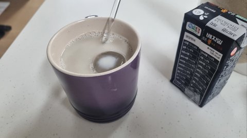 그리고 내눈에 들어온 한녀석 검은콩두유 바로 구멍내서 컵에다가 듬뿍 넣어줬지만