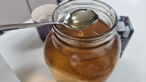 꿀3스푼에 두유도 좀더 넣어주고 얼음도 녹았으니 얼음도 하나더 넣어주고
