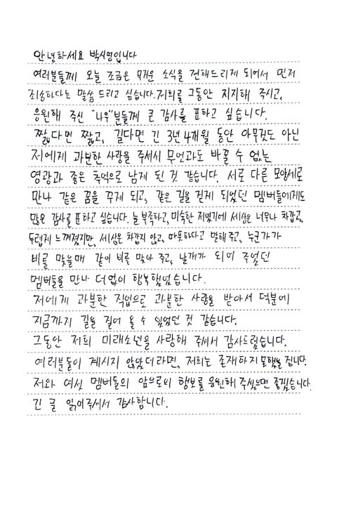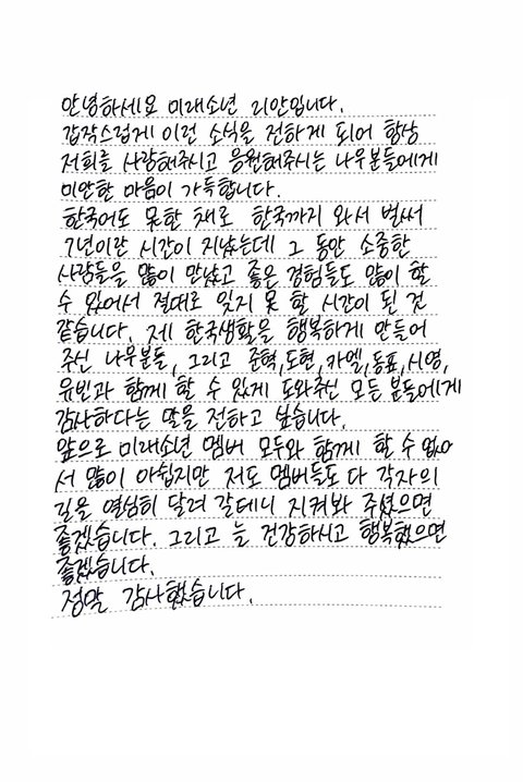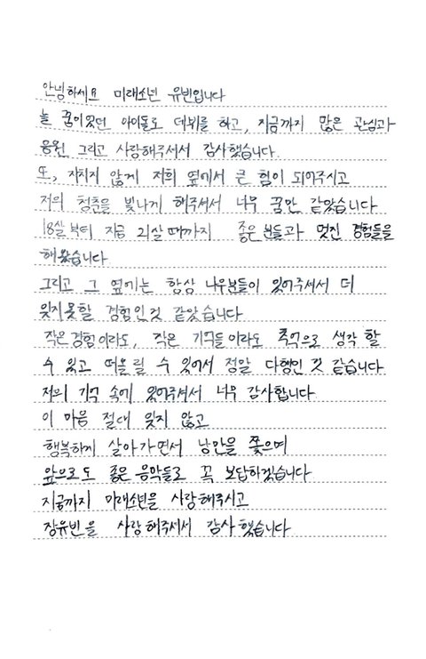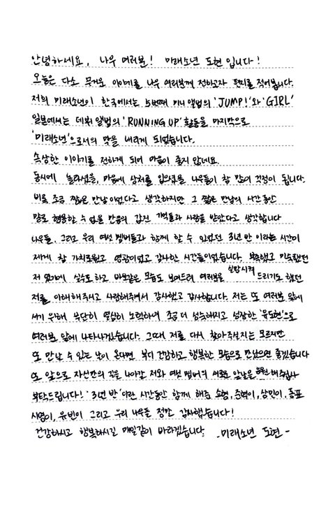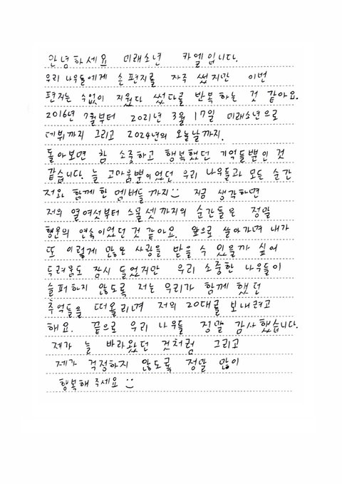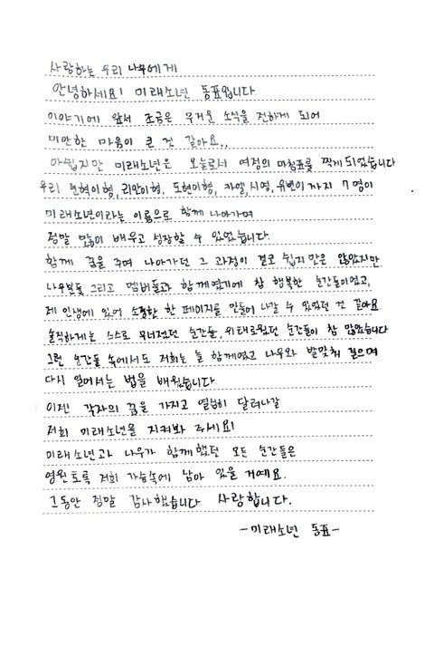 미래소년 공계에 좀전에 공지랑 각자 손편지 올라옴