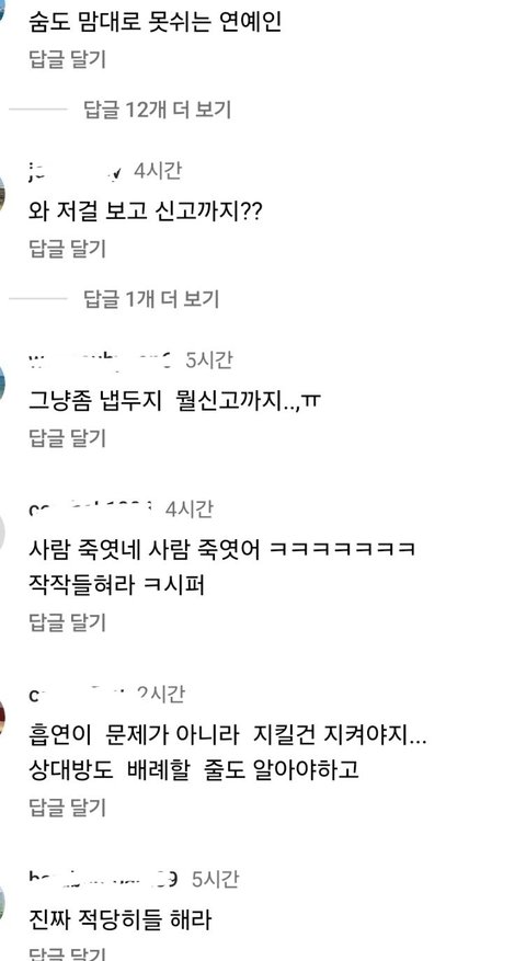 실내흡연+동의를 했든 안 했든 다른 스탭들도 많은 공간에서 담배 피고 일부러 안 그랬대도 사람 면전에다 대고 담배 연기 내뿜었는데 이걸 쉴드친다고???????