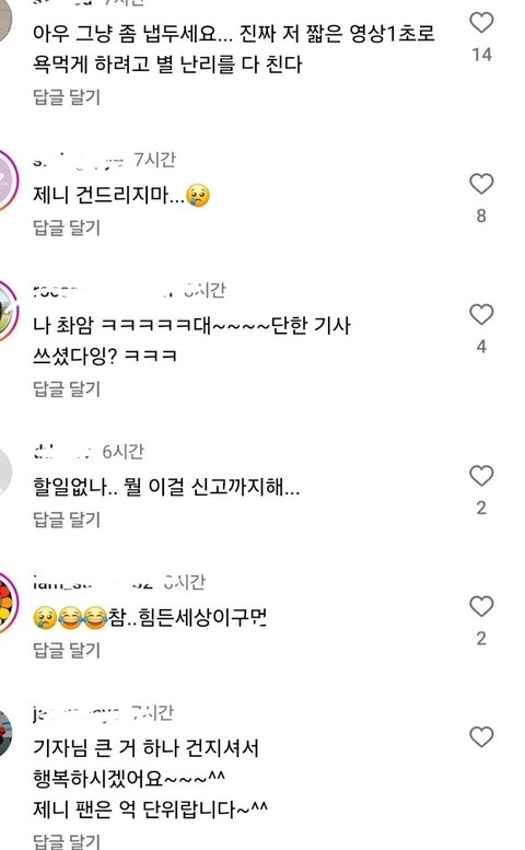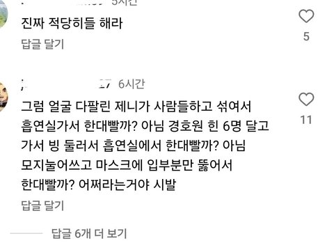 그리고 비판하는 사람도 많긴한데 쉴드댓도 생각보다 진짜 많음 게시물 가보면 꼭 그런 댓글 몇개 섞여서 좋아요 많이 눌러져있든데ㅋㅋㅋㅋㅋㅋ