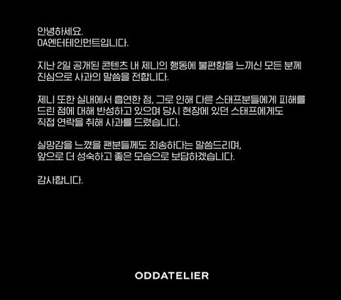 그리고 제니 소속사에서 깔끔히 사과했음