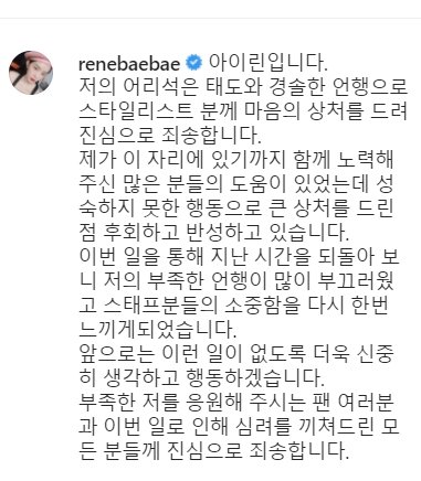 제니 사과문 깔끔하고 ㄱㅊ은데? 소속사 통해서 공개하는건 타돌중에도 개많고 ㅋㅋ 사과문으로도 시비터는거 ㅈㄴ 추하다 ㅋㅋ