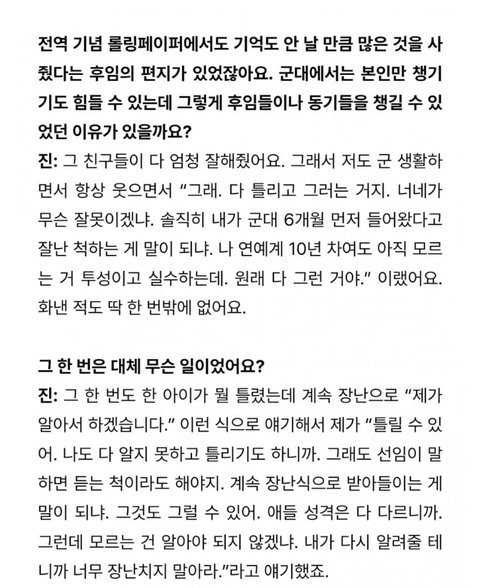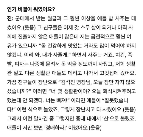 군대썰도 많이 풀어줘서 좋네 좋은 선임이지만 선은 지키는 딱 석지니잖아