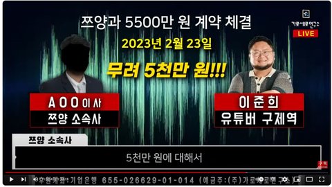 쯔양을 협박해서 5500만원 뜯음(부가세 포함)