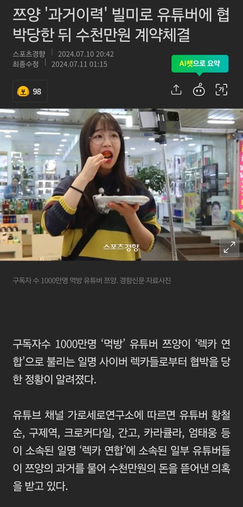 쯔양이 주변인들 도움으로 법적대응하니깐 자살해서 갈취당한 돈도 돌려받을수가 없음 ..