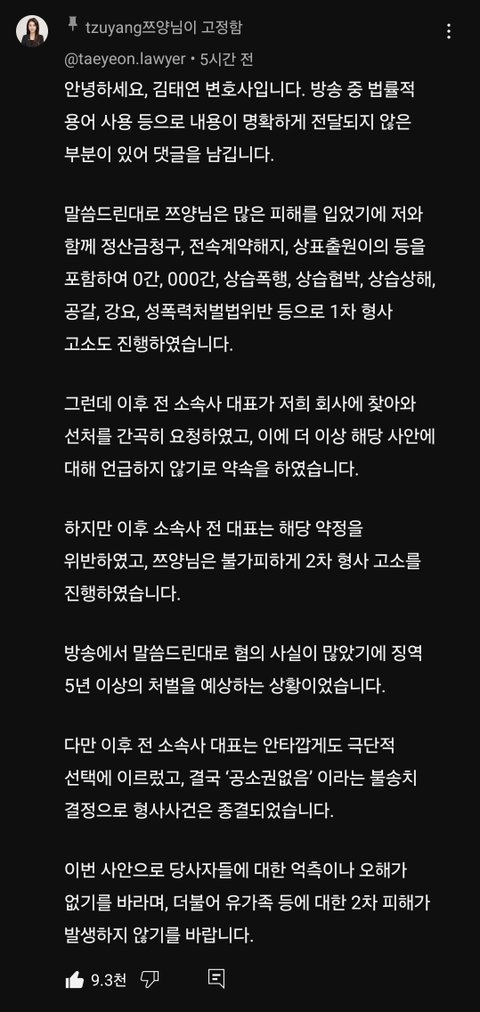 쯔양 녹취록 진짜 충격이야