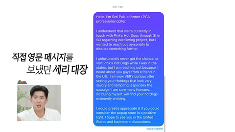 박세리가 직접 이 핫도그 브랜드에게 장문의 메시지를 보냄