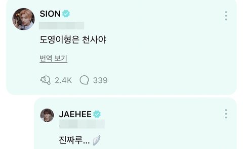 다른 멤버인 시온이 댓글로 도영이형은 천사야 라니까 진짜루...ㅋㅋㅋㅋㅋㅋ