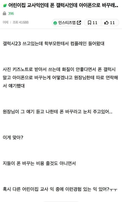 어린이집 교사에게 갤럭시 쓰지 말라는 학부모