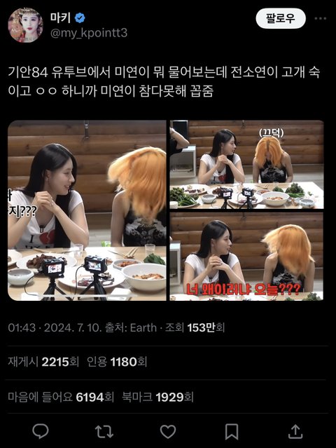 근데 미연 자기 완벽한 공주 이런거 컨셉인지 몰라도 좀 그만했으면 좋겠음 열폭 이런게 아니고 걍 좀 지겨워