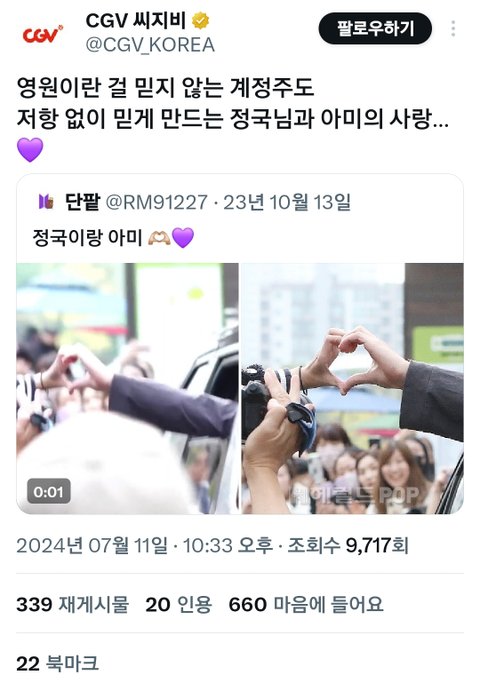 CGV인 것 같음 짹에 CGV 공계 주접 시작함ㅋㅋㅋ