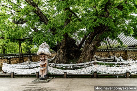 안동 하회마을에 있는 삼신당 신목입니다.삼신할머니가 부부들에게 아기를 점지해주는 곳입니다.느티나무이고 하늘과 땅을 이어주는 신목입니다.보호수로 지정되었습니다.