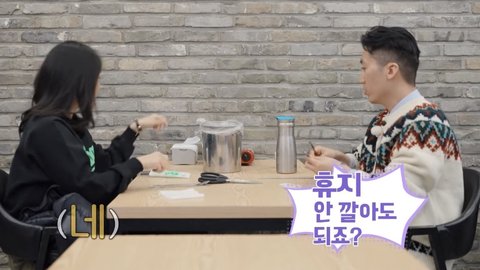 자리 앉자마자 본인은 수저 휴지 안깔아서 괜찮다함