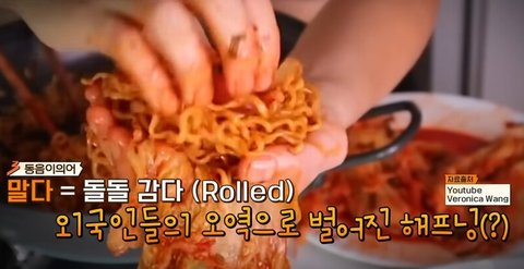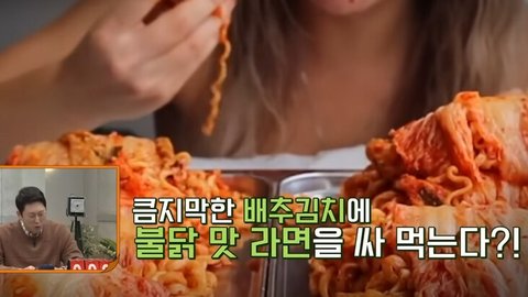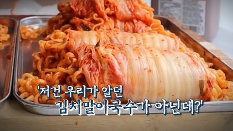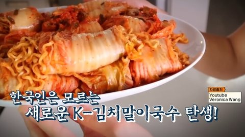 근데 보니까 백김치에 붉닭라면을 돌돌 말아 먹던지,,