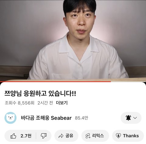 쯔양 찐팬이라고 쯔양 응원한다고 영상 갑자기 뜬금 올림