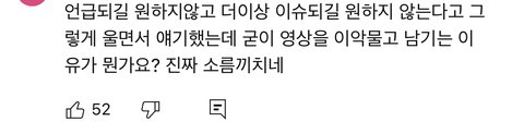 쯔양이 언급되고 이슈화되는거 원하지 않는다고 그렇게 울고 영상 올렸는데