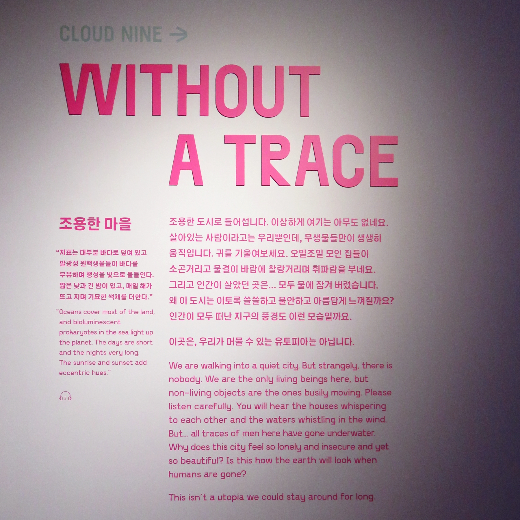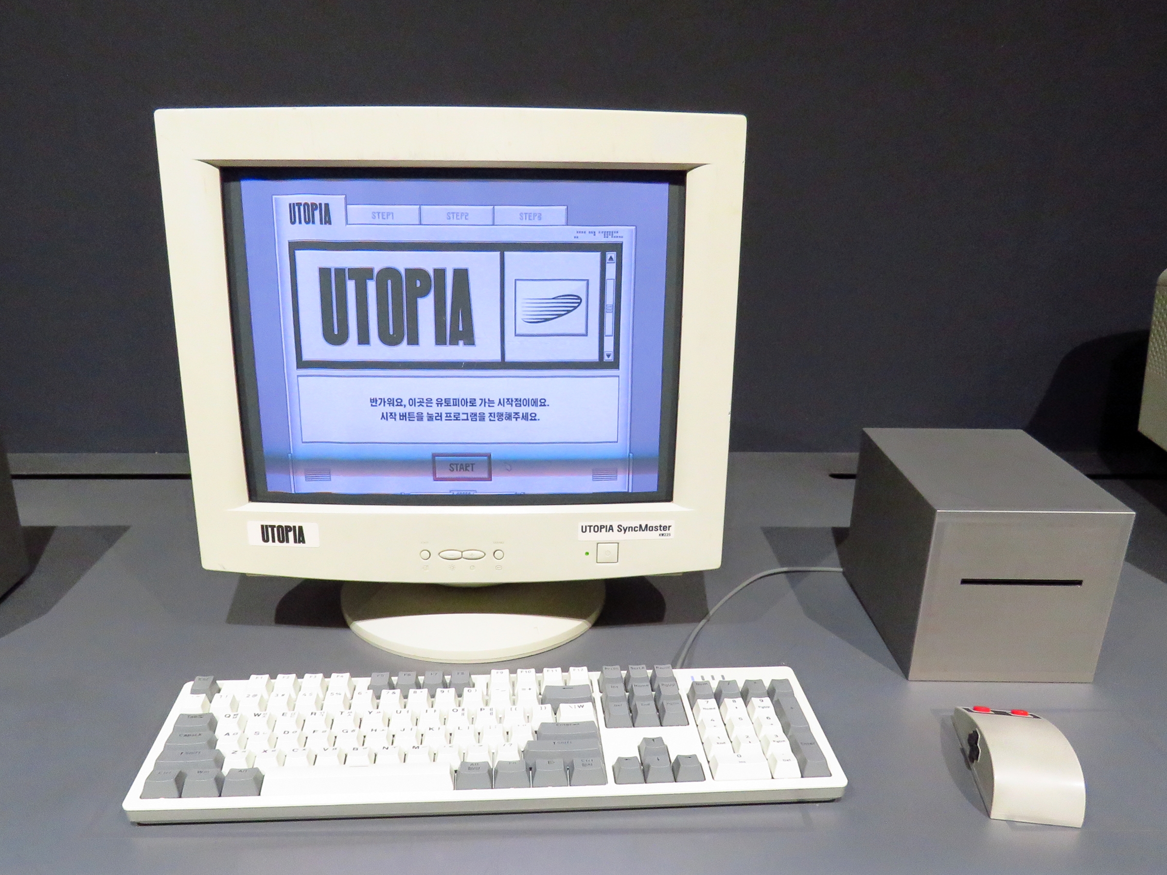 입장하면 일단 레트로 컴퓨터에서 내가 생각하는 유토피아의 이미지를 묻는 3개의 질문에 답하고, QR코드가 찍힌 프린트를 받게 됩니다. 나중에 퇴장할 때 가장 인상 깊었던 섹션을 고른 후 관람 전 답했던 유토피아와 관람 후 내가 찾은 유토피아가 얼마나 일치했는지 확인할 수 있어요.