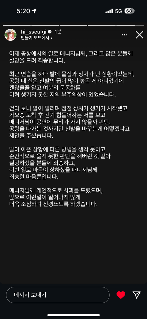 슬기 사과문 올림ㄷㄷ