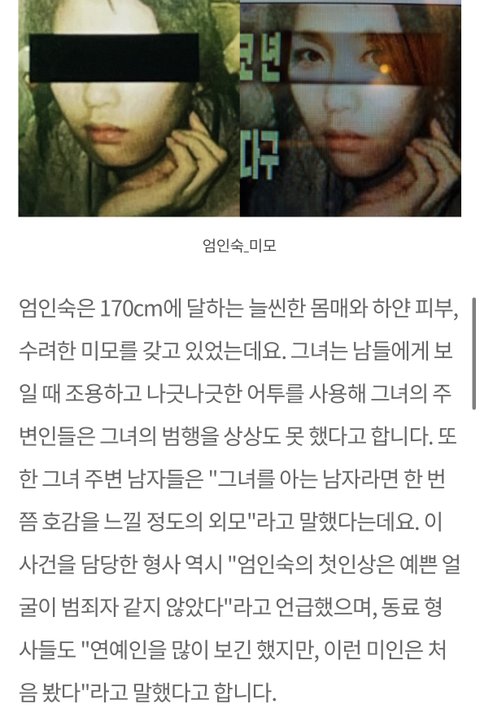 근데 ㄹㅇ 호감형이긴 한거같음 범죄자치고,, 막 형사들도 조사할때 연예인보다 이뻤다고 그랬대