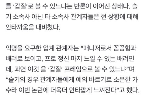 메니저님은 슬기 무대 펑크까지 날까봐 무대 설 수 있겠냐고 차라리 바꾸자고 제안한건데 이게 갑질이라고 하는 애들