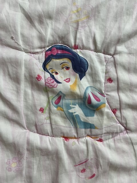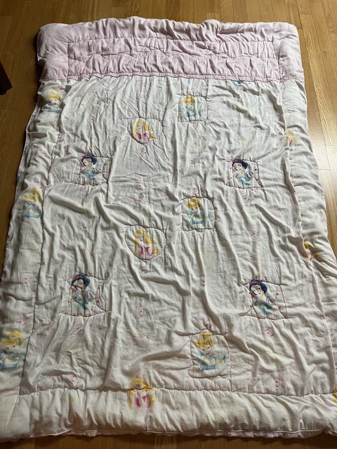 밑에 사진을 보면 이불에 백설공주 신데렐라 잠자는 숲속의 공주 그림이 있고 위쪽에는 다른 색깔로 되어있어 그리고 디즈니 상표도 있어ㅠㅜㅠ
