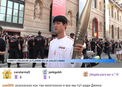 오늘 프랑스 혁명기념일이라 성화봉송 다 프랑스인만 달리는데 유일하게 진만 한국인임