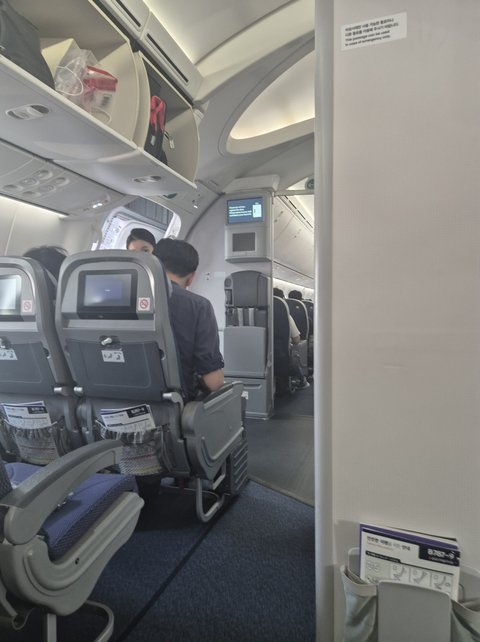 처음에 승무원분들께서 일일이 모든 승객분들께 말씀하셨어요 "공용통로가 아니다, 앞쪽이나 뒤쪽을 이용하셔야한다" 그런데 .... 승무원분들이 사라지시면.. 바로 징검다리... 심지어 저는 8번이나 저를 타고 넘어가시는 여성분을 뵀어요 옷이 특이해서요...