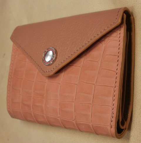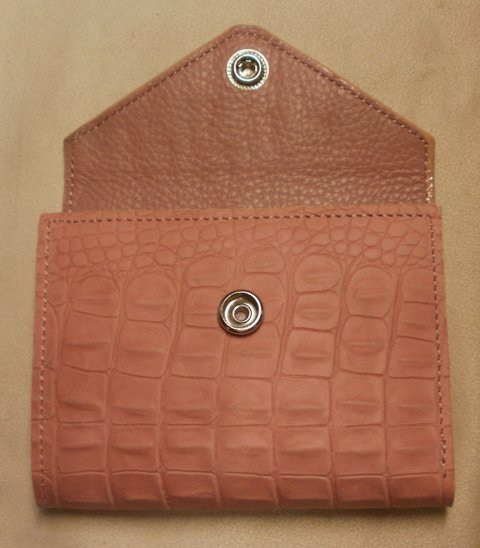 핑크 컬러 악어 무늬 및 슈렁큰 엠보싱 가죽
