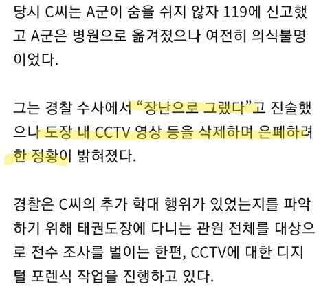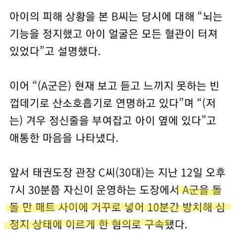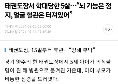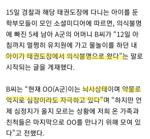 태권도장 5살 아이 학대로 심정지 뇌사