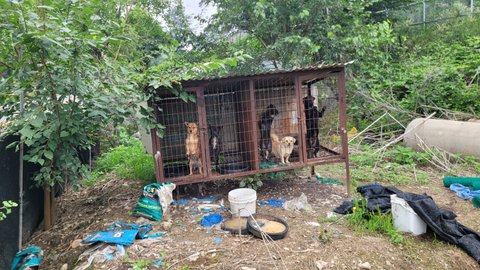 열흘 전쯤 연천의 한 식당에서 심각한 상태의 뜬장에 작은 강아지들이 있는것을 봤어요. (지난 몇년간 이 식당에서 그냥 마당에서 키움)