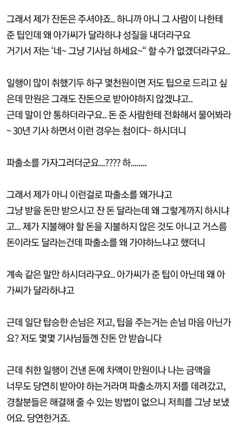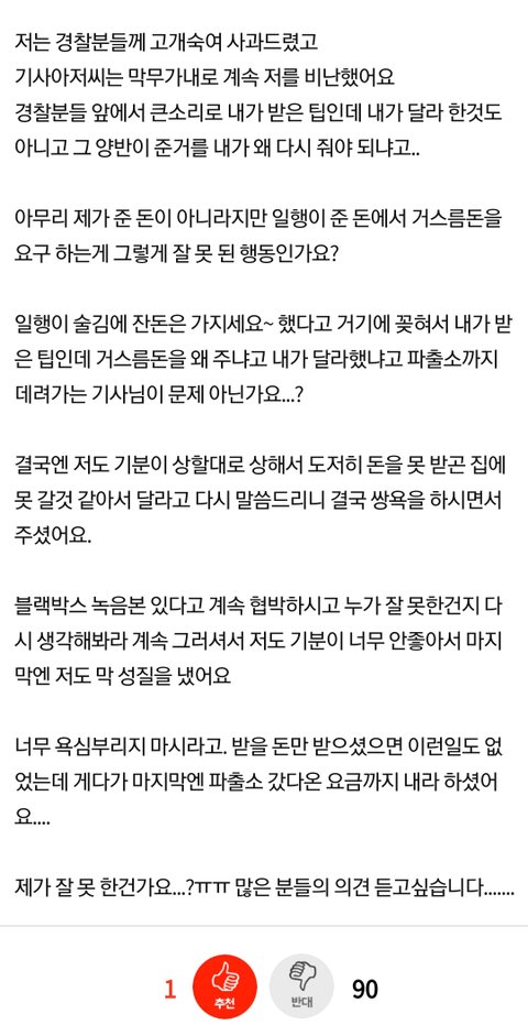 기사님이 왜 줘야 하냐고 하니까 만원 내놓으라고 땡깡시전