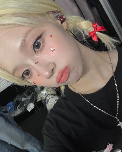 체리 스티커랑 하트 스티커? 붙인 것도 넘 귀엽다 ㅜㅜㅜㅜㅜ 블러셔 색도 예뻐 존예존귀 한국도 단발 보여줘