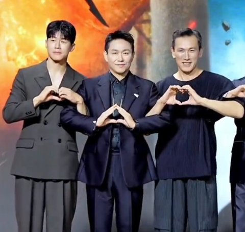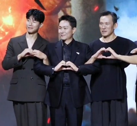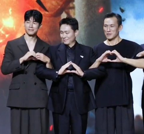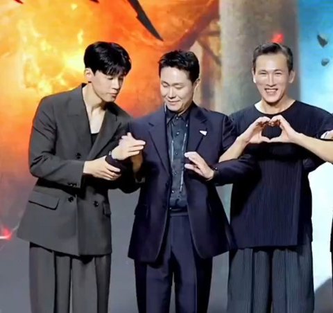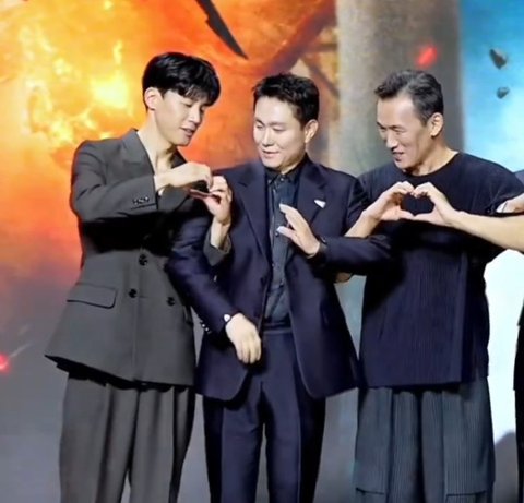 옆에 유오성은 완벽하게 하트를 만듦