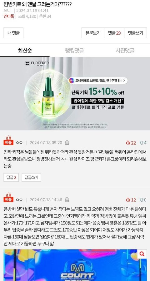 걍 남들 다신는 신발이나 멈버들이랑 같은신발신고찍은사진 오조오억개인데 어쩌다 굽신거나 조금이라도 작게나오면 난리치고 연말시상식만봐도 비교해도 그렇게작은키도 아닌데 굳이 그루머 168이라고하는거 그냥 까고싶어서 그런거야? 팬아님 지나칠사진 하나하나 깔거있음 가져오는게 악개같은느낌이라 좀 씁쓸하네
