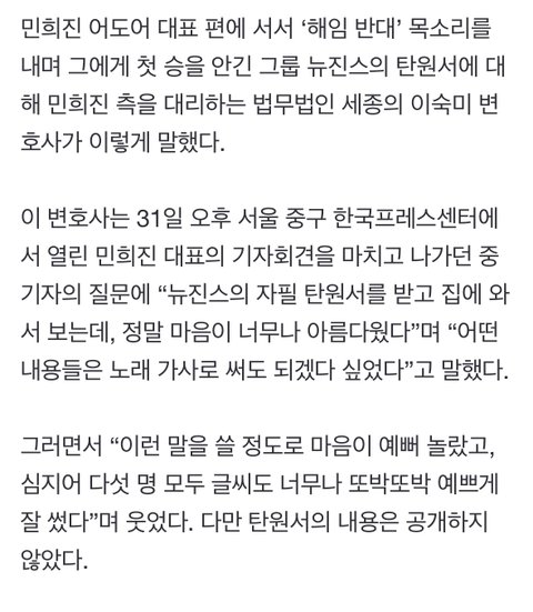 뉴진스탄원서낸이유 민희진 해임반대 탄원서낸건데?