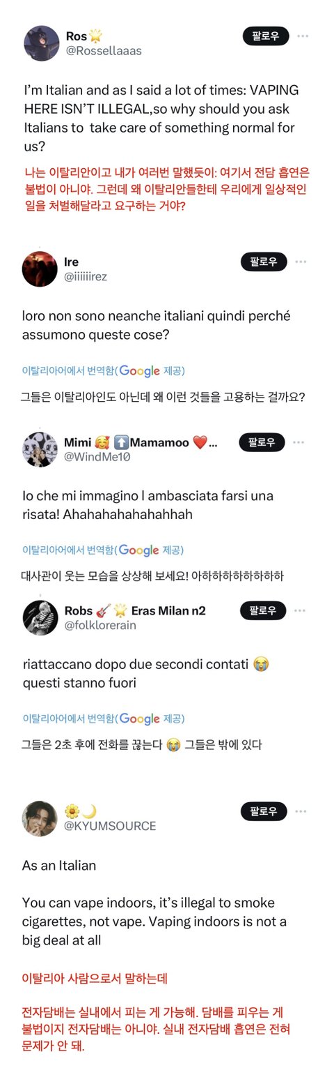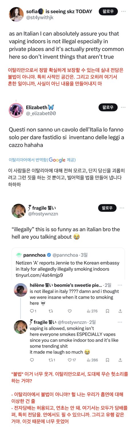 이탈리아 대사관에 제니를 신고를 했다는 소식에 이탈리아인들은 다들 황당하다는 반응임