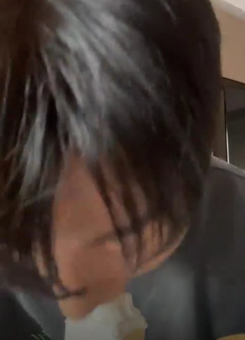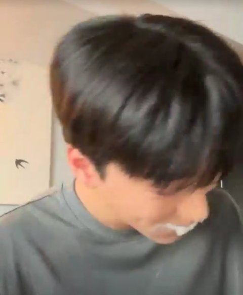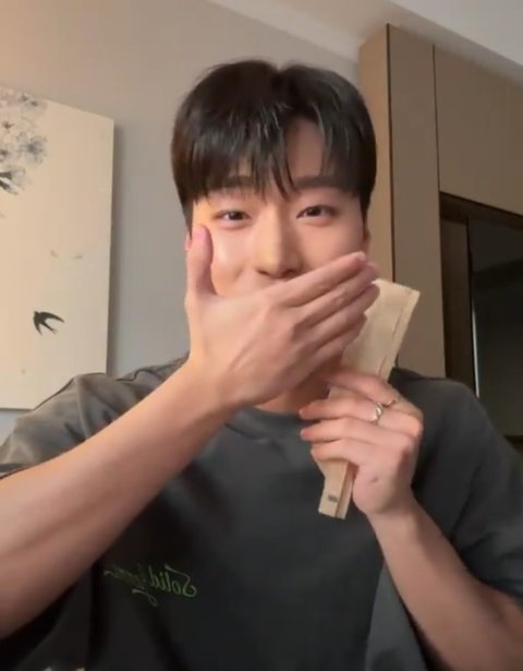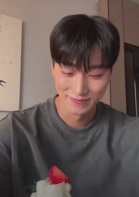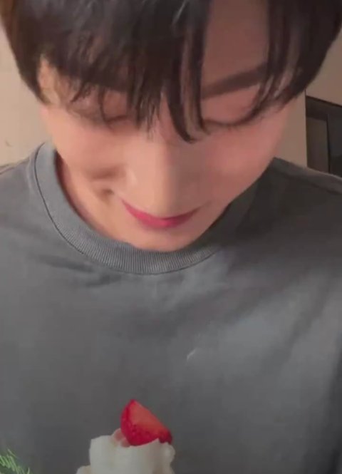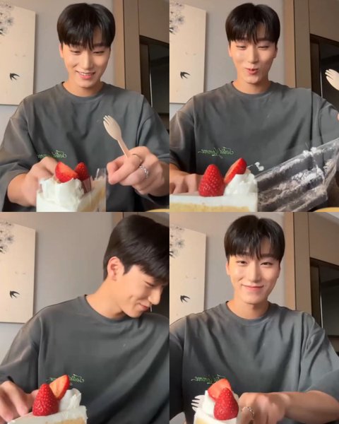 많이 부끄러웠는지 케이크 입에 넣고 부채질하기
