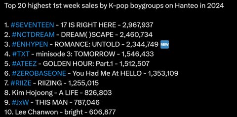 2024 한터 초동(발매 후 일주일간 음반 판매량)