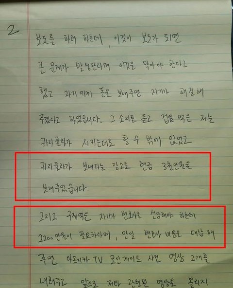 옥중서신에 카라큘라와 구제역에게 각각 3000만원과 2200만원을 줬다고 밝힘